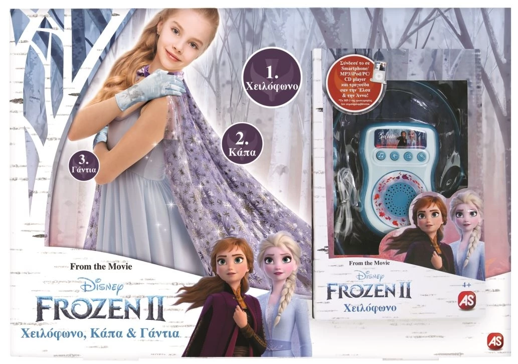 Frozen 2 σετ χειλόφωνο, κάπα και γάντια. Σετ Χειλόφωνο, Κάπα, Γάντια Frozen! Γίνε σαν την αγαπημένη σου Έλσα! Φόρεσε την κάπα και τα γάντια και τραγούδα τα αγαπημένα σου κομμάτια με το χειλόφωνο που λειτουργεί πραγματικά! *Οι μπαταρίες δεν περιλαμβάνονται.