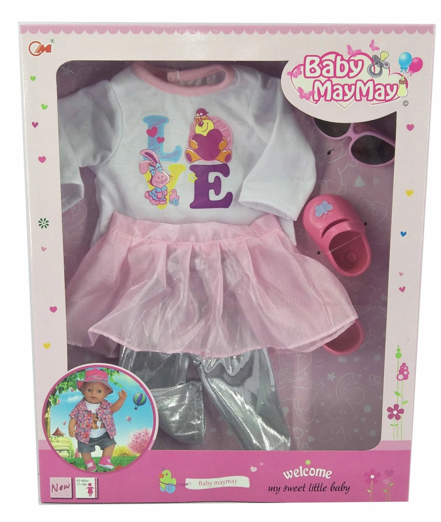 Baby May May Σετ Κοστούμι Με Παπούτσια Για Κούκλα Ενα συνολάκι για να αλλάξετε το στυλ της κούκλας σας! Με Παπούτσια, γυαλιά ηλίου Κατάλληλο για κούκλες μωρό 43-46 εκ.