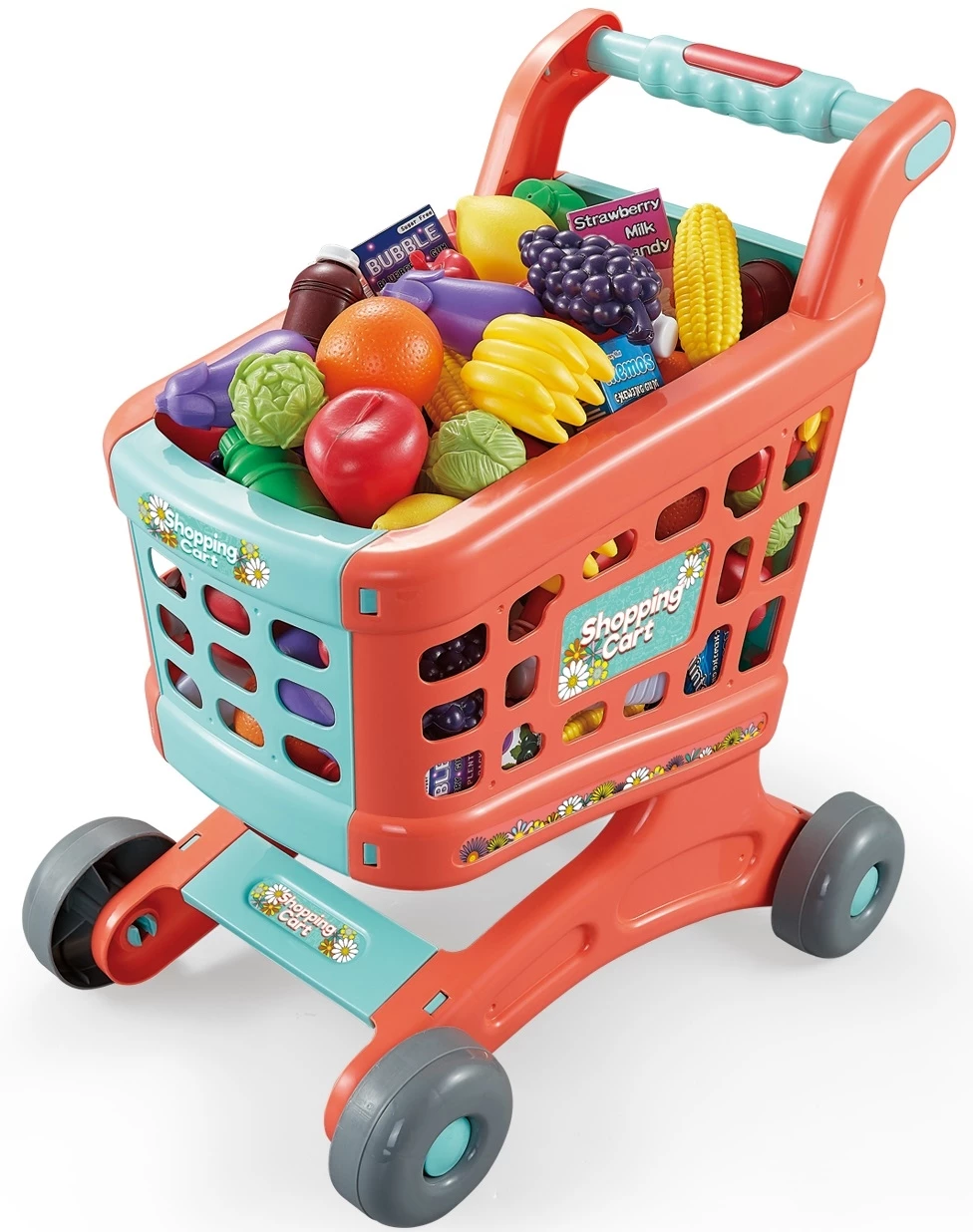 Καρότσι Super Market με Φως και Ήχο. Περιέχει 19 τεμάχια, όπως φρούτα, λαχανικά κα. Διαστάση καροτσιού: 39,5 x 31,5 x 47,5 εκ. *Λειτουργεί με 2 μπαταρίες ΑΑΑ (δεν περιλαμβάνονται).
