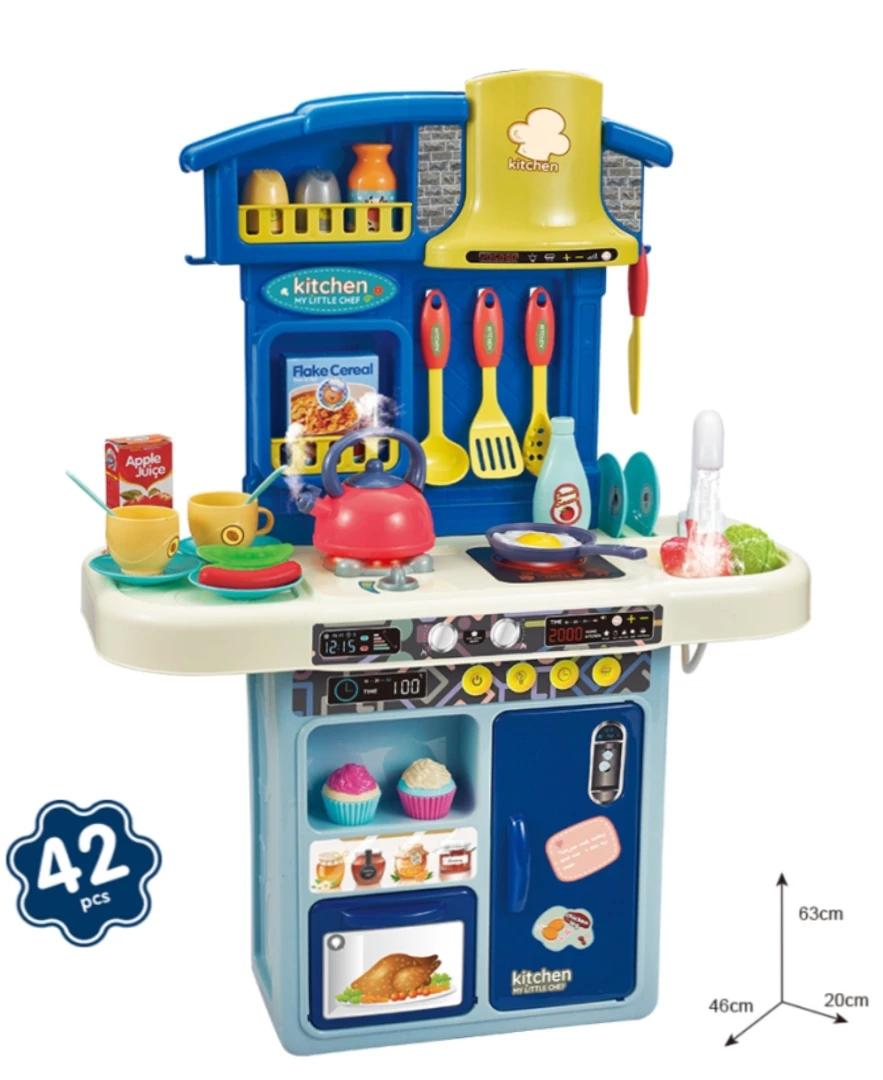 Κουζίνα Deluxe Kitchen Με Φως, Ατμό, Νερό,Ήχους Απόκτησε την δική σου κουζίνα και δημιούργησε τα καλύτερα φαγητά! Η κουζίνα My Little Chef περιέχει 42 αξεσουάρ για ατελείωτες ώρες παιχνιδιού! Τα παιδιά μπορούν να πλύνουν τα πιάτα στη βρύση με αληθινό νερό! Με ήχους σαν αληθινή κουζίνα!