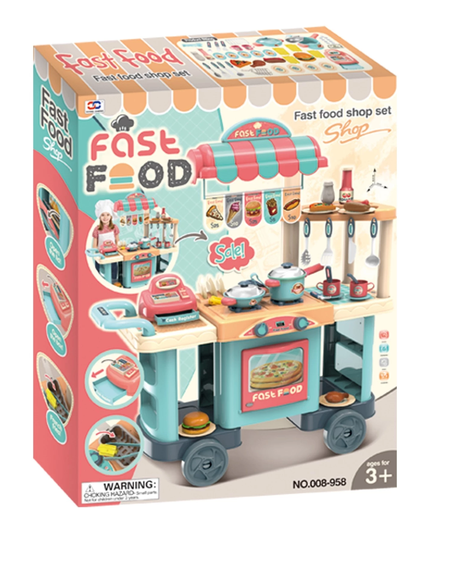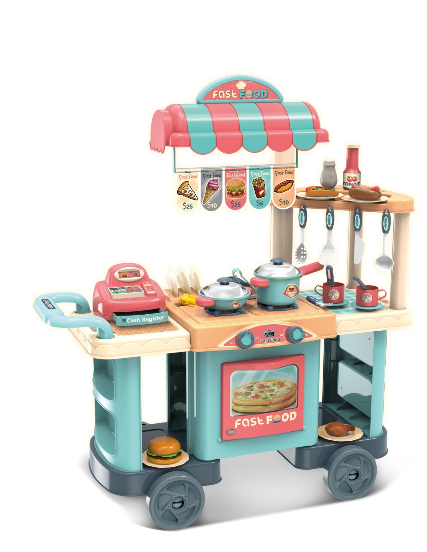 Με εστίες κουζίνας, φουρνο, ταμειακή μηχανή και ρόδες για να την πηγαίνει παντού!