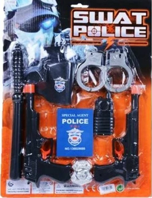 Όπλα καρτέρα με χειροπέδες και γκλοπ Swat Police Το σετ περιλαμβάνει όπλα, σήμα, χειροπέδες και άλλα αξεσουαρ Τα σχέδια και τα χρώματα ενδέχεται να διαφέρουν ελάχιστα από αυτά της φωτογραφίας *Η επιλογή σχεδίου θα γίνεται τυχαία