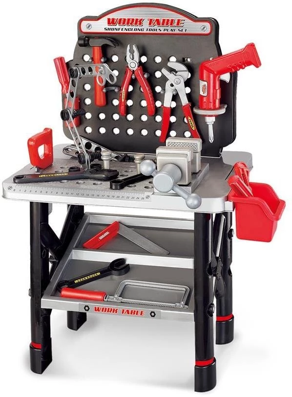 Playset Πάγκος εργασίας με εργαλεία Work Table Σετ με πάγκο μαστορέματος και διάφορα εργαλεία To τρυπάνι λειτουργεί με 2 μπαταρίες ΑΑ. Διαστάσεις:53x32x74 εκ *Οι μπαταρίες δεν περιλαμβάνονται.