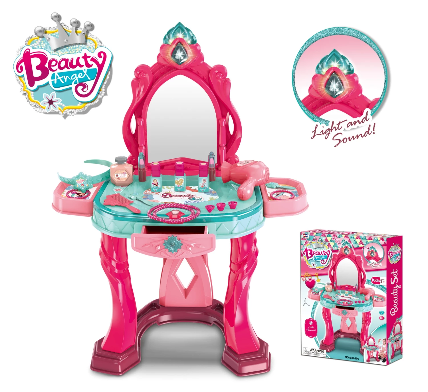 Σετ Ομορφιάς Καθρέφτης Με Αξεσουάρ Απέκτησε την δική σου τουαλέτα ομορφιάς! Με φως και ήχους! Με συρτάρι Με 17 αξεσουάρ: κολιέ, βραχιόλι,πιστολάκι μαλλιών,χτένα,δαχτυλίδια,στέκα μαλλιών,μπουκαλάκια,κραγιόν ψεύτικα κ.α Ύψος: 76εκ περίπου *ΔΕΝ ΠΕΡΙΛΑΜΒΑΝΕΙ ΤΟ ΣΚΑΜΠΩ *ΔΕΝ ΠΕΡΙΛΑΜΒΑΝΕΙ ΜΠΑΤΑΡΙΕΣ 3xAA