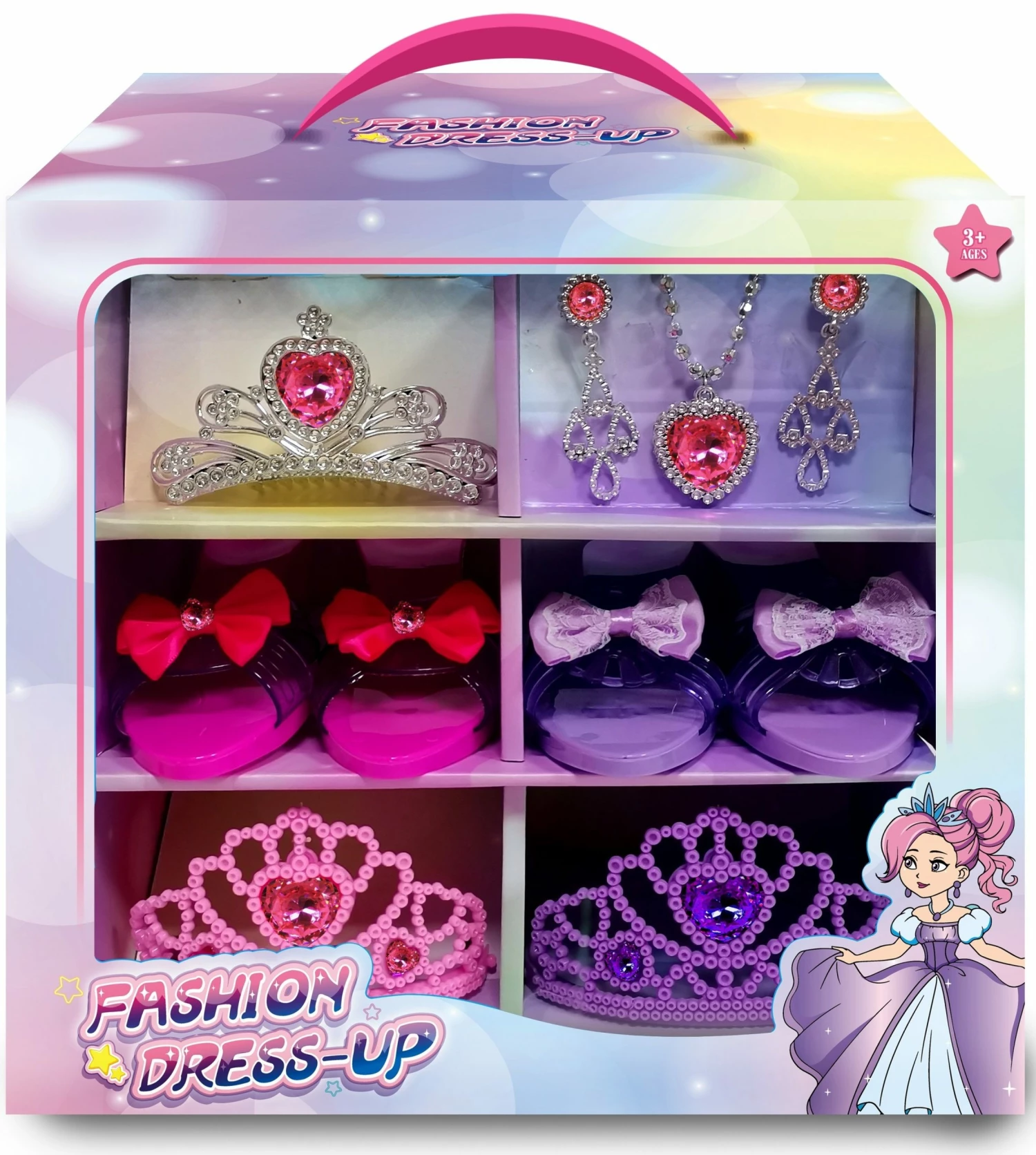 Σετ Ομορφιάς Πριγκίπισσας Γίνε και εσύ η πρίγκιπισσα που πάντα είχες ονειρευτεί. Περιλαμβάνει Τιάρες, γοβάκια και κοσμήματα. *Τα χρώματα ενδέχεται να διαφέρουν από την φωτογραφία