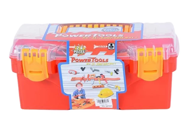 Βαλιτσάκι Εργαλείων Power Tools – Κόκκινο Ενα πρακτικό βαλιτσάκι γαι τους μικρούς μάστορες! Περιέχει διάφορα εργαλεία όπως πριόνι, σφυράκι, ηλεκρικό κατσαβίδι με μοχλό κίνησης, πένσα, τανάλια, βίδες και άλλα! Σύνολο: 24 εξαρτήματα
