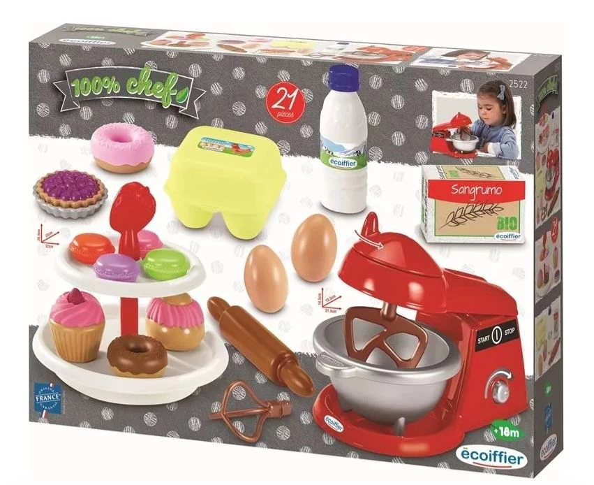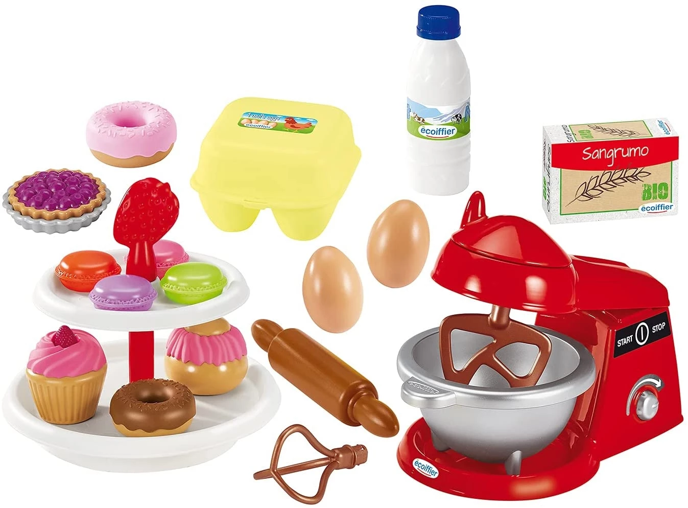 Ecoiffier Κουζινικά Σετ Ζαχαροπλαστικής 21τμχ Αυτό το σετ ζαχαροπλαστικής περιλαμβάνει όλα τα απαραίτητα για την παρασκευή γλυκών! Με 2 γάτζους μίξερ, σταντ για κέικ και φυσικά, νόστιμα γλυκά! Συνολικά περιλαμβάνονται 21 αξεσουάρ.