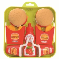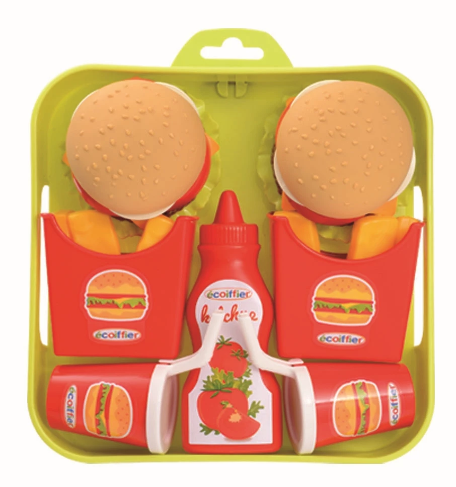 Ecoiffier Παιδικο σετ φαγητού, δίσκος με χάμπουργκερ! Περιλαμβάνει: •Δίσκο •2 χάμπουργκερ •2 κουτιά αναψυκτικό •2 κουτάκια με πατάτες τηγανητές •1 κέτσαπ