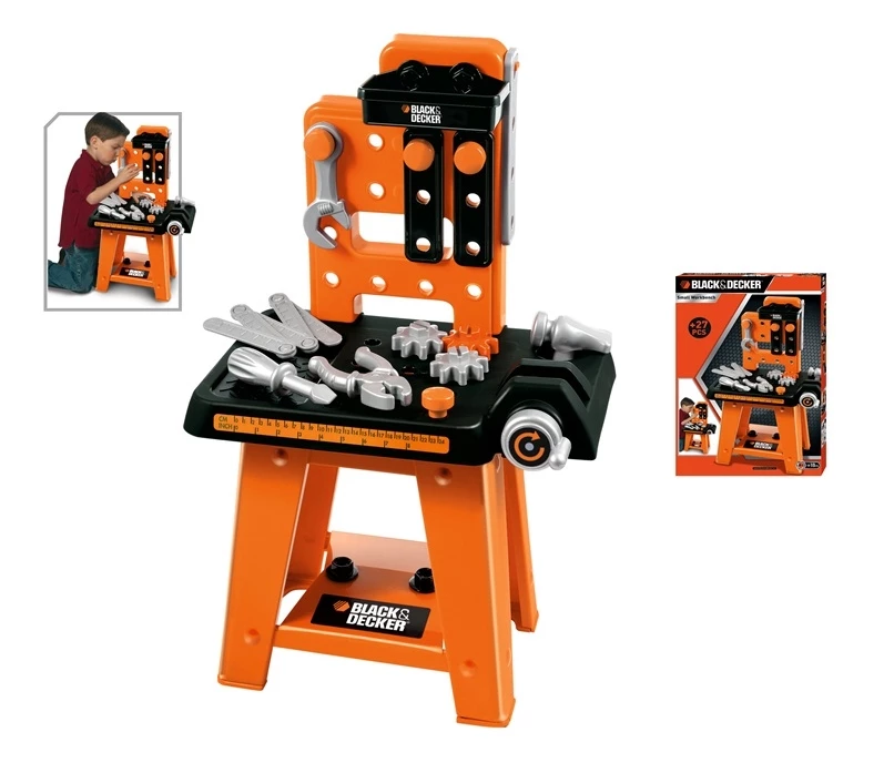 Ecoiffier Παιδικος Παγκος Εργαλειων Black+Decker Τα εργαλεία είναι ελαφριά, ασφαλή και εργονομικά για τα μικρά χέρια καθώς και οι επιφάνειες παιχνιδιών. Περιεχόμενο: 1 Πάγκος εργασίας 27 Εργαλεία Διαστάσεις προϊόντος: 38 x 24,5 x 60 εκ.