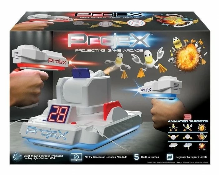 Laser-X- Projex Προτζέκτορας Στόχων Το Laser X Projex είναι ένα διασκεδαστικό παιχνίδι δράσης! Πρόκειται για έναν προτζέκτορα κινούμενων στόχων και σας προκαλεί στην πιο συναρπαστική μάχη! Χαμηλώστε τα φώτα και μετατρέψετε όποιον τοίχο του σπιτιού σας θέλετε (μέσα ή έξω από το σπίτι) σε ένα φανταστικό παιχνίδι πρόκλησης! Το Projex…