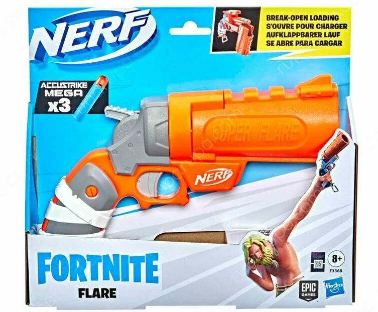Nerf Fortnite Flare Ο εκτοξευτής Nerf Fortnite Flare εμπνέεται από τον εξοπλισμό που χρησιμοποιείται στο δημοφιλές βιντεοπαιχνίδι και αναπαράγει την εμφάνιση του αντίστοιχου εκτοξευτή! Ο εκτοξευτής περιλαμβάνει γεμιστήρα ανοικτής φόρτωσης: το μπροστινό μέρος του εκτοξευτή ανοίγει προς τα κάτω, ώστε να έχετε πρόσβαση στον θάλαμο στο εσωτερικό του. Φορτώστε 1…
