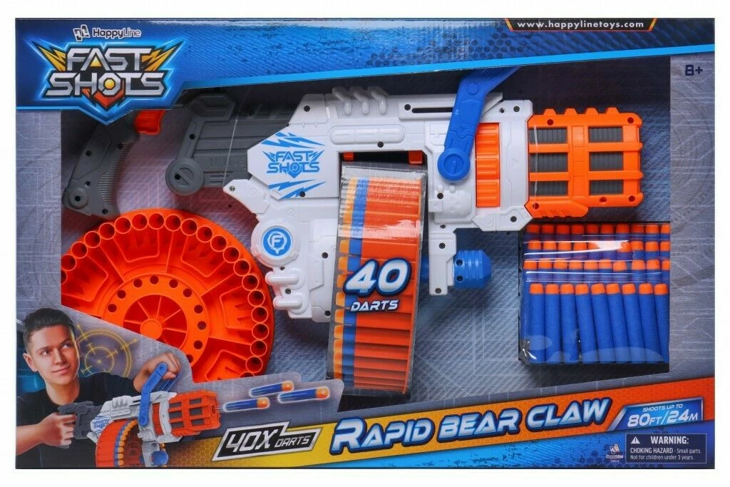Fast Shots Hulk Raider Set With 40 Foam Darts And 1 Barril Fast Shots όπλα αφρού! Σου δίνουν την δυνατότητα να διασκεδάσεις με τους φίλους σου, να σκοπεύσεις από μακριά, να επαναφορτώσεις εύκολα και να πετύχεις τον στόχο σου πριν σε καταλάβουν. Ζήσε τον ενθουσιασμό της σκοποβολής και την πρόκληση…