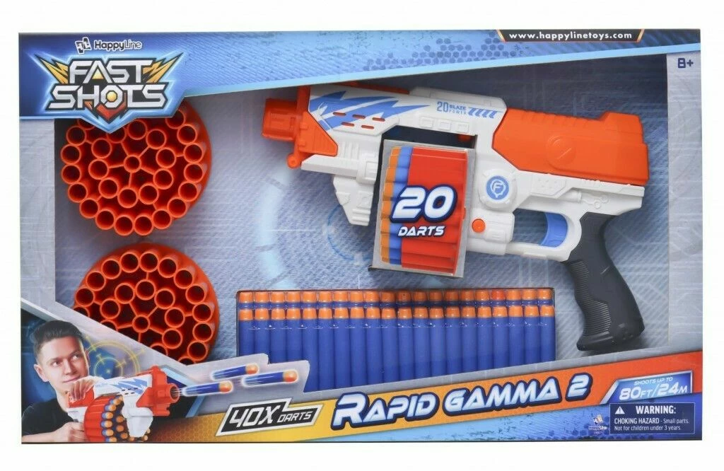 Fast Shots Rapid Gamma Set With 40 Foam Darts And Barrils Fast Shots όπλα αφρού! Σου δίνουν την δυνατότητα να διασκεδάσεις με τους φίλους σου, να σκοπεύσεις από μακριά, να επαναφορτώσεις εύκολα και να πετύχεις τον στόχο σου πριν σε καταλάβουν. Ζήσε τον ενθουσιασμό της σκοποβολής και την πρόκληση του…