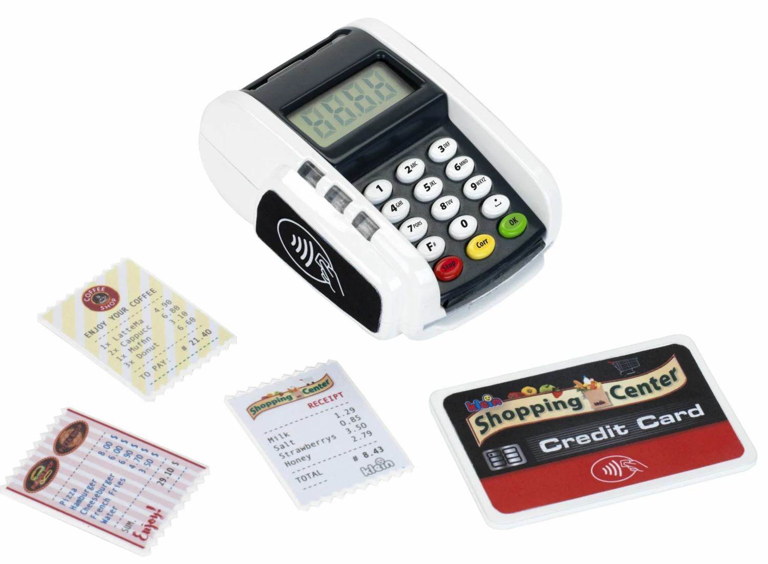 Αυτό το μηχάνημα για τις κάρτες το Pos είναι απαραίτητο σε κάθε μαγαζί. Λειτουργεί με μπαταρία με φως και ήχο, με λειτουργία ανέπαφης πληρωμής με πιστωτική κάρτα, σαν τα αληθινά μηχανήματα Pos.