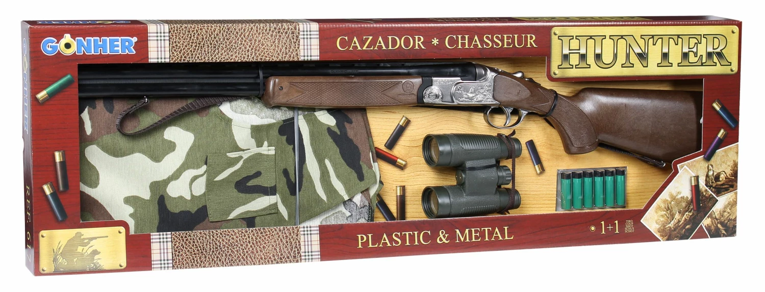 Παιδικό Όπλο Gonher Σετ Κυνηγού Περιλαμβάνει:ένα τουφέκι, φυσίγγια, ένα ζευγάρι κιάλια και ένα γιλέκο παραλλαγής.