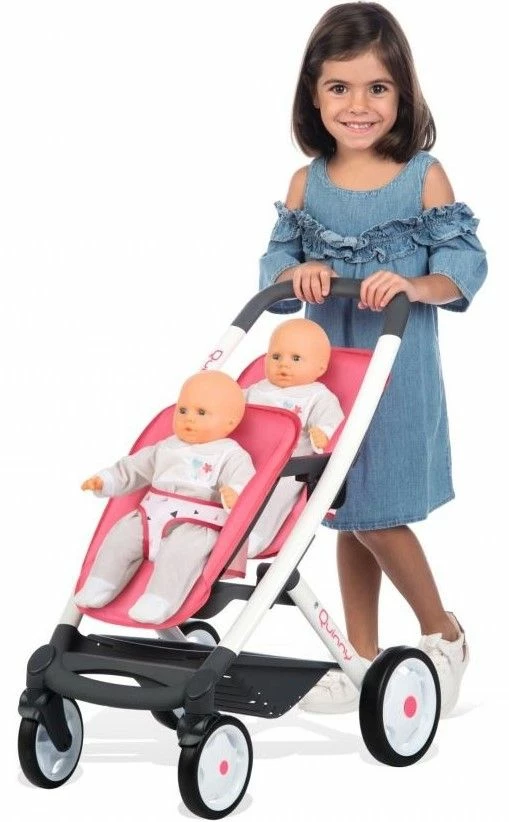 Smoby Καρότσι Κούκλας Mc And Q Twin Pushchair Με το διπλό καροτσάκι Maxi-Cosi και Quinny, θα έχετε τη δυνατότητα να έχετε μαζί σας 2 από τις κούκλες του μωρού σας παντού! Οι περίπατοι θα είναι ευχάριστοι και ήρεμοι χάρη στους σιωπηλούς τροχούς. Δεν θα ανησυχείτε για να οδηγήσετε το καροτσάκι…