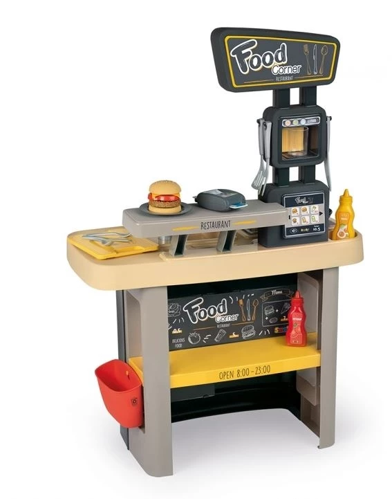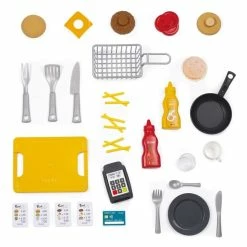 Περιλαμβάνονται 29 αξεσουάρ, όπως 1 τηγάνι με κρέπα, 1 πιάτο, 1 χάμπουργκερ για προετοιμασία, πατάτες, 1 τερματικό πληρωμής με μαγικά εισιτήρια, 1 φλιτζάνι, 1 ποτήρι, 1 δίσκος, 1 σάλτσα κέτσαπ, 1 σάλτσα μαγιονέζας , Σκεύη μπάρμπεκιου, 1 τηγανίτα, 1 φριτέζα και μαχαιροπίρουνα.