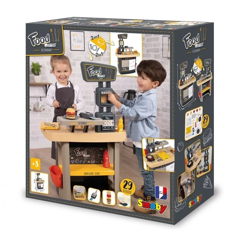 Οι 2 ξεχωριστοί χώροι που αντιπροσωπεύουν μια κουζίνα και ένα τμήμα εξυπηρέτησης θα επιτρέψουν στα παιδιά σας να γίνουν σεφ και καταναλωτές.
