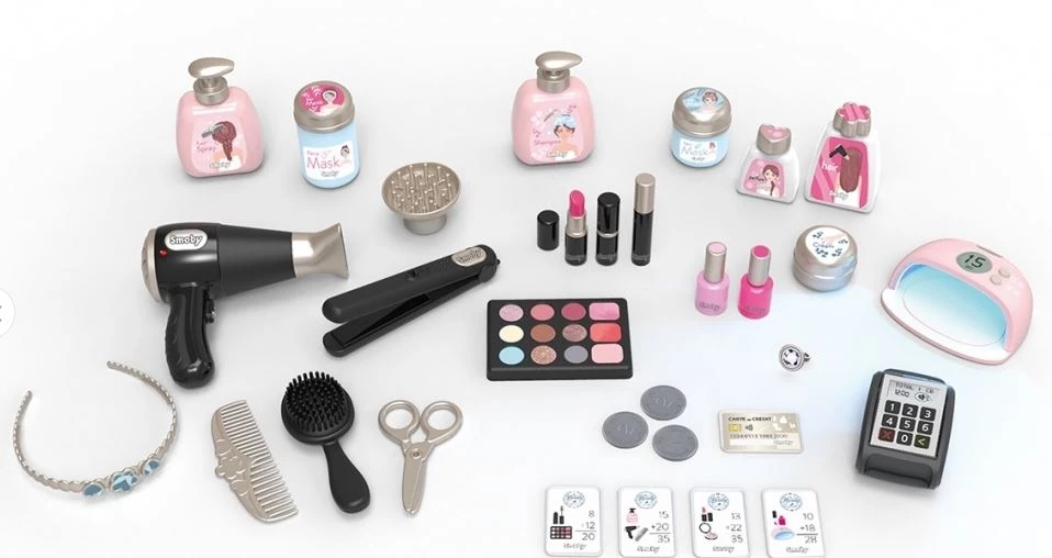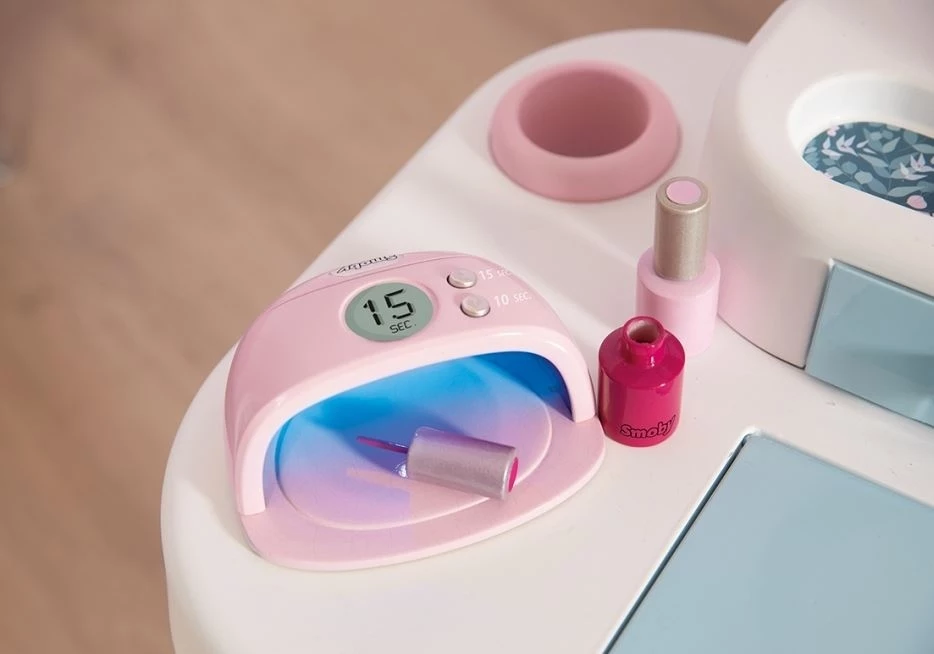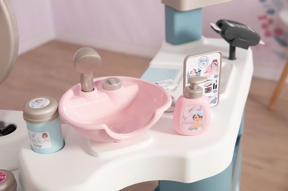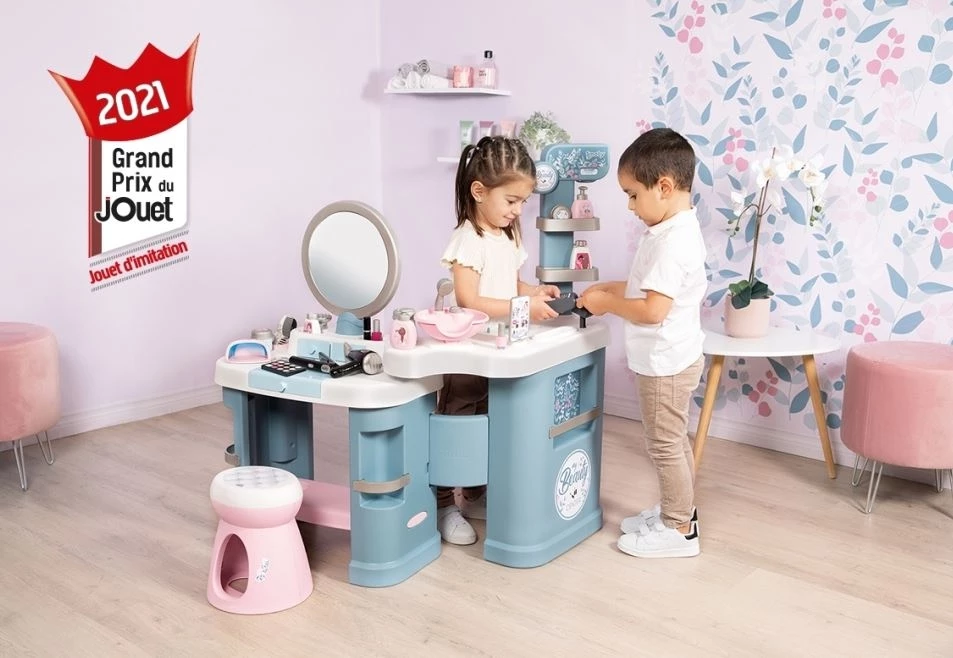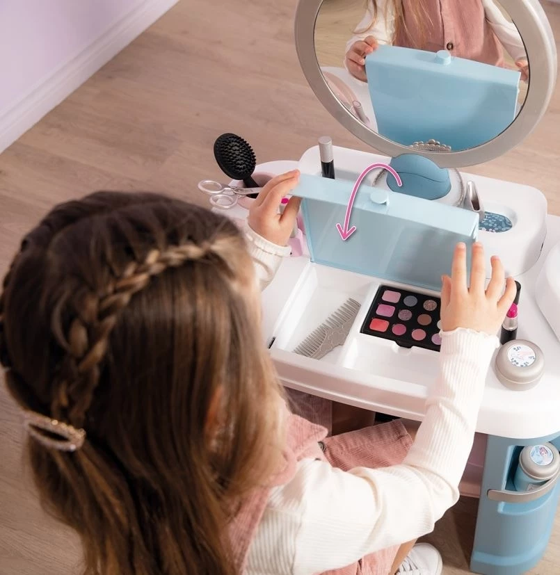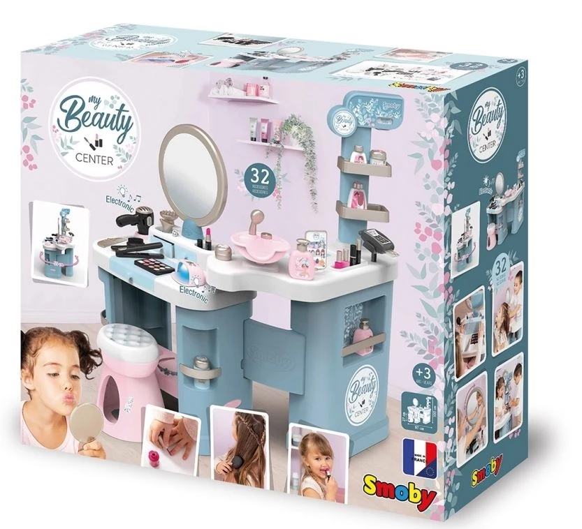 Smoby Σετ ομορφιάς My Beauty Center Το παιδί σας θα μπορεί να διαχειρίζεται το δικό του σαλόνι ομορφιάς! Πολύ ολοκληρωμένο, συνδυάζει 3 τμήματα: κομμωτική, νύχια και μακιγιάζ. Το παιδί σας μπορεί να μπει στη θέση ενός μακιγιιέρ ενός κομμωτή και ενός πωλητή. Ο χώρος με το μπουντουάρ έχει 1 σκαμπό,…
