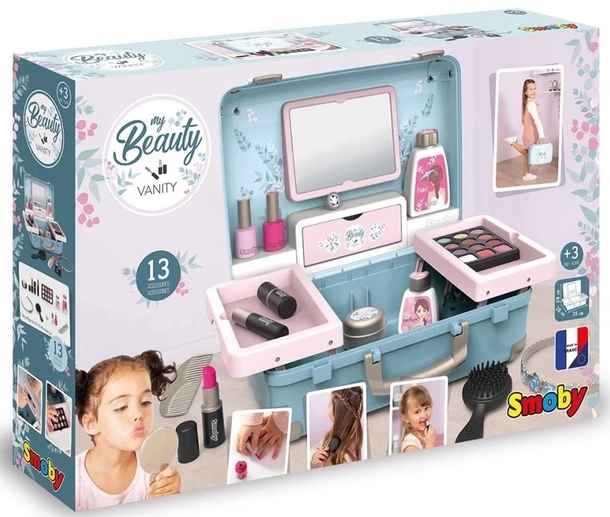 Smoby Σετ Ομορφιάς My Beauty – Vanity Πλέον το παιδί έχει τα πάντα στη διάθεσή του για να μακιγιάρει τον εαυτό του ή τους γύρω του με το βαλιτσάκι μακιγιάζ My Beauty Vanity της Smoby!! Είναι εύκολα στη χρήση και στη μεταφορά, αφού διαθέτει 2 ”κλειδαριές” και μια λαβή για…