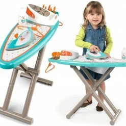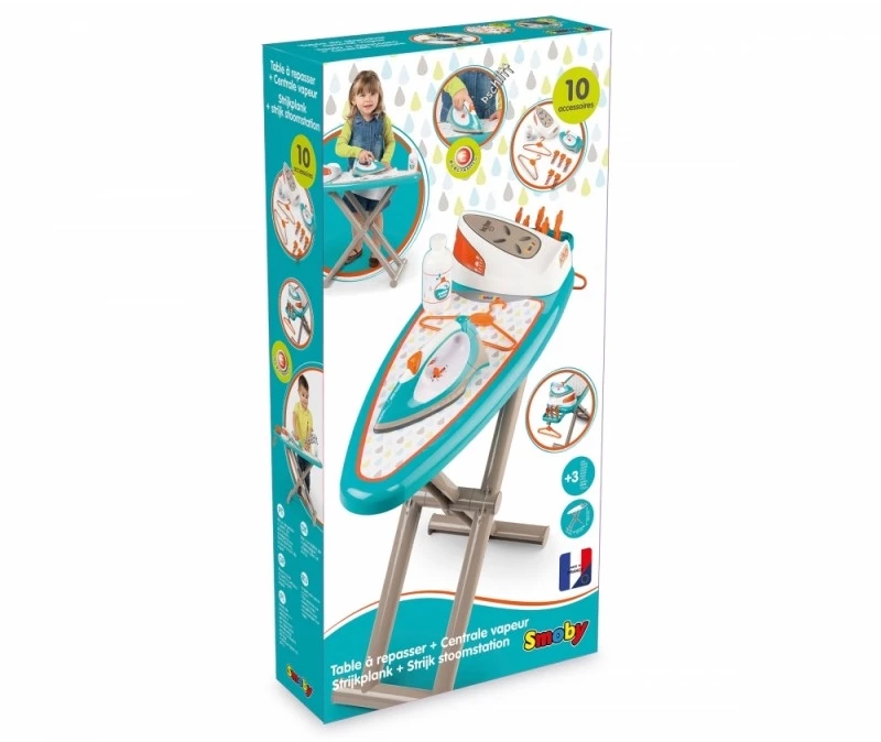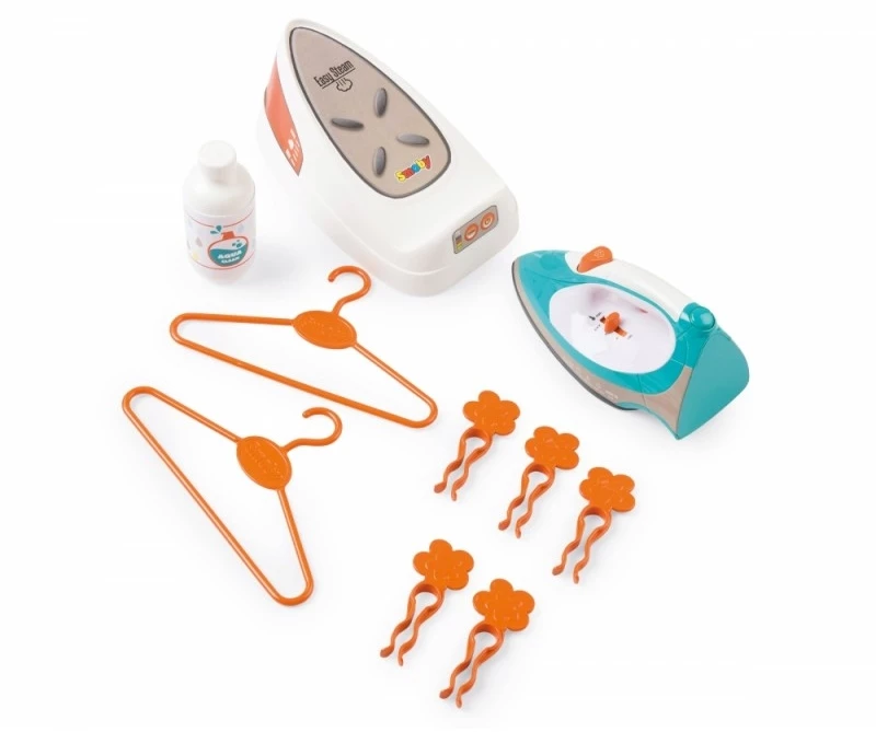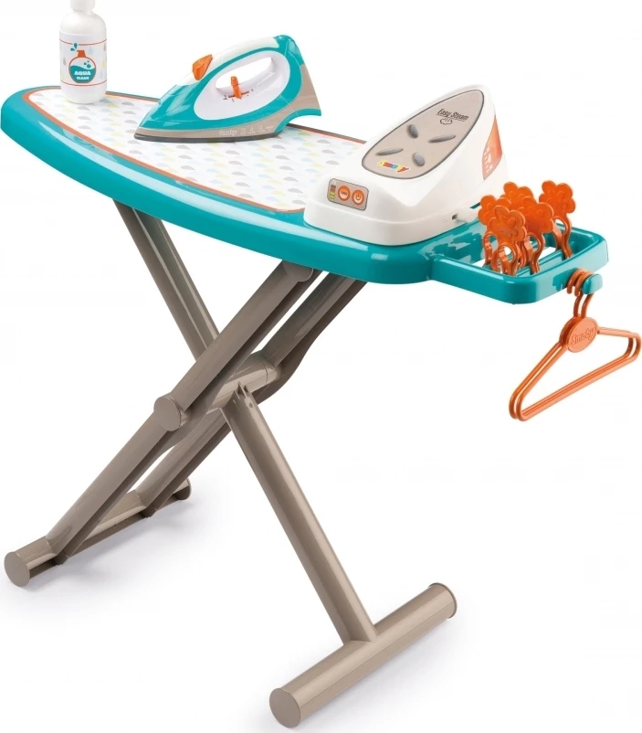 Smoby Σιδερώστρα Και Σίδερο Ατμού Με Αξεσουάρ Σιδερώστρα και σίδερο ατμού με αξεσουάρ: 1 φιάλη, 2 κρεμάστρες και 5 μανταλάκια για να κρεμάσετε τα ρούχα μόλις σιδερωθούν. Πάτησε το κουμπί και θα παράξει ατμό! Λειτουργεί με 2 μπαταρίες LR6 / AA (δεν περιλαμβάνονται) Διαστάσεις προϊόντος: 69x23x48,5 εκ.